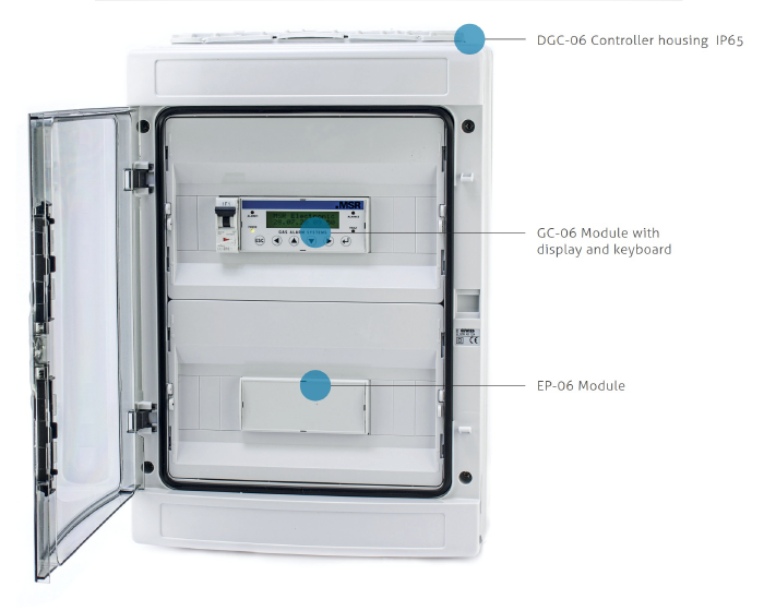The Digital-Gas-Controller DGC-06 has been developed for large systems or for extensive connections. There is hardly a scenario in gas monitoring that this controller does not cover. From complex garages to access functions that are activated by gas alarm, everything is possible. The innovative DGC-06 gas controller series is designed in accordance with EN 50545 and other. standards and can monitor and evaluate up to